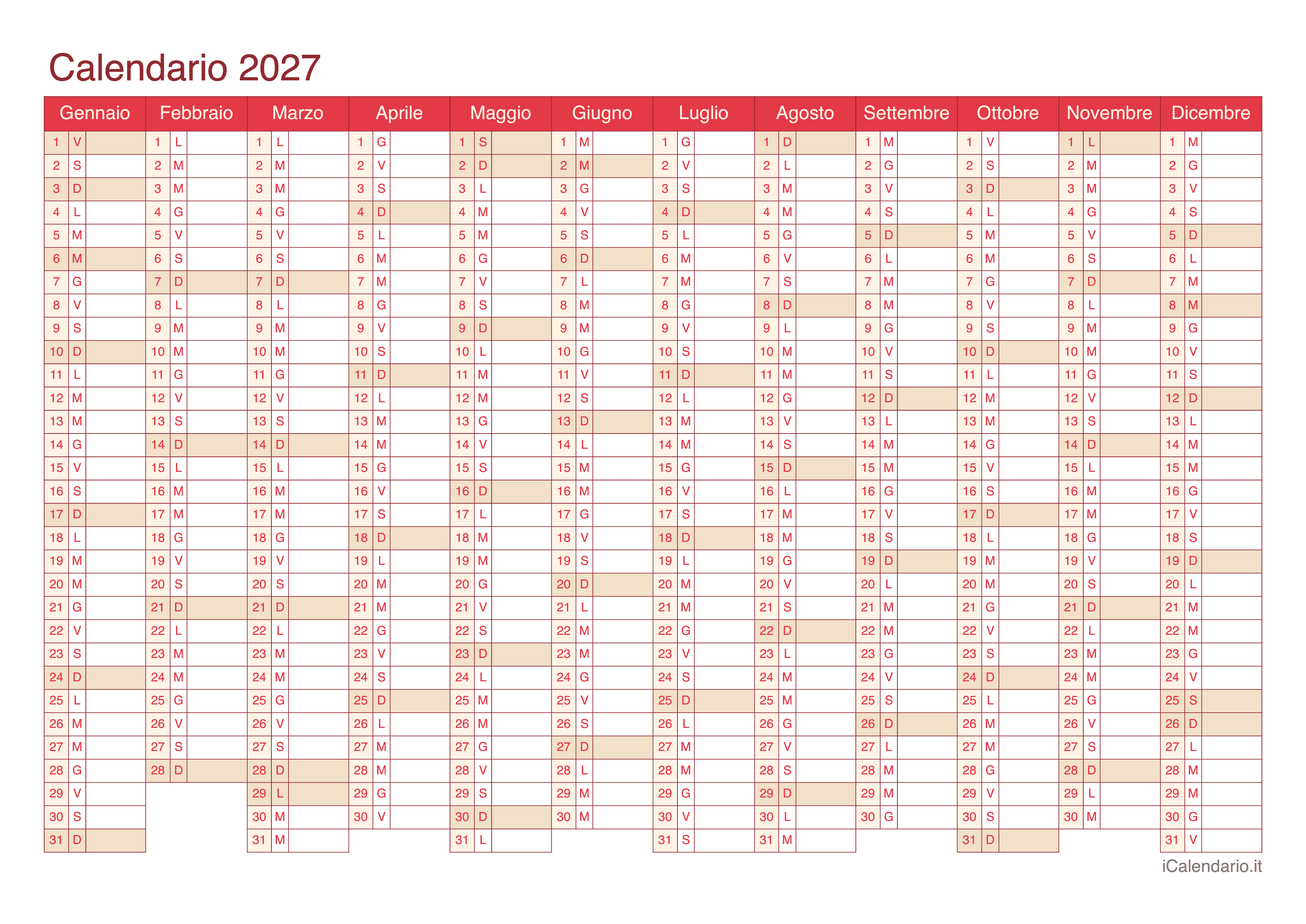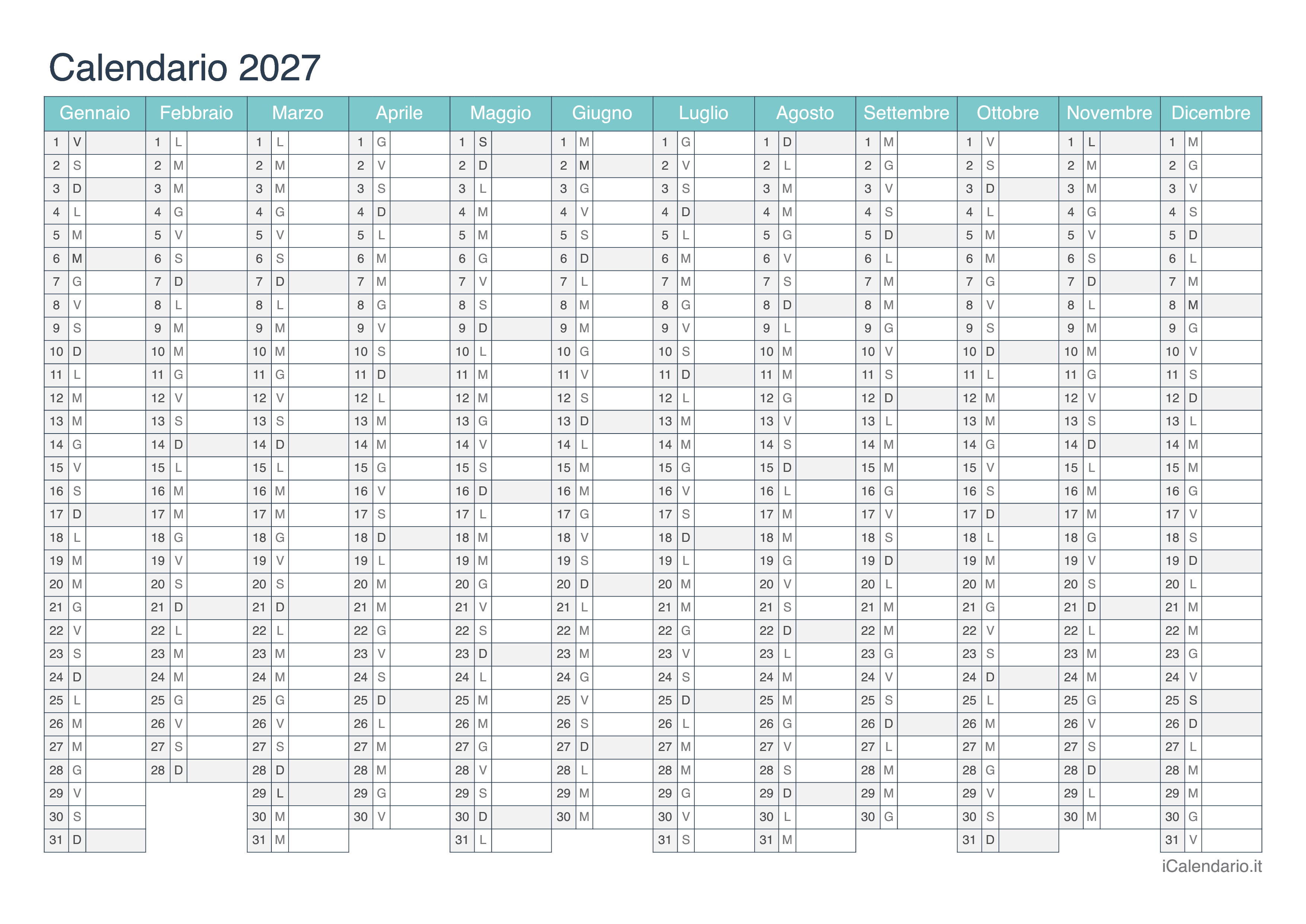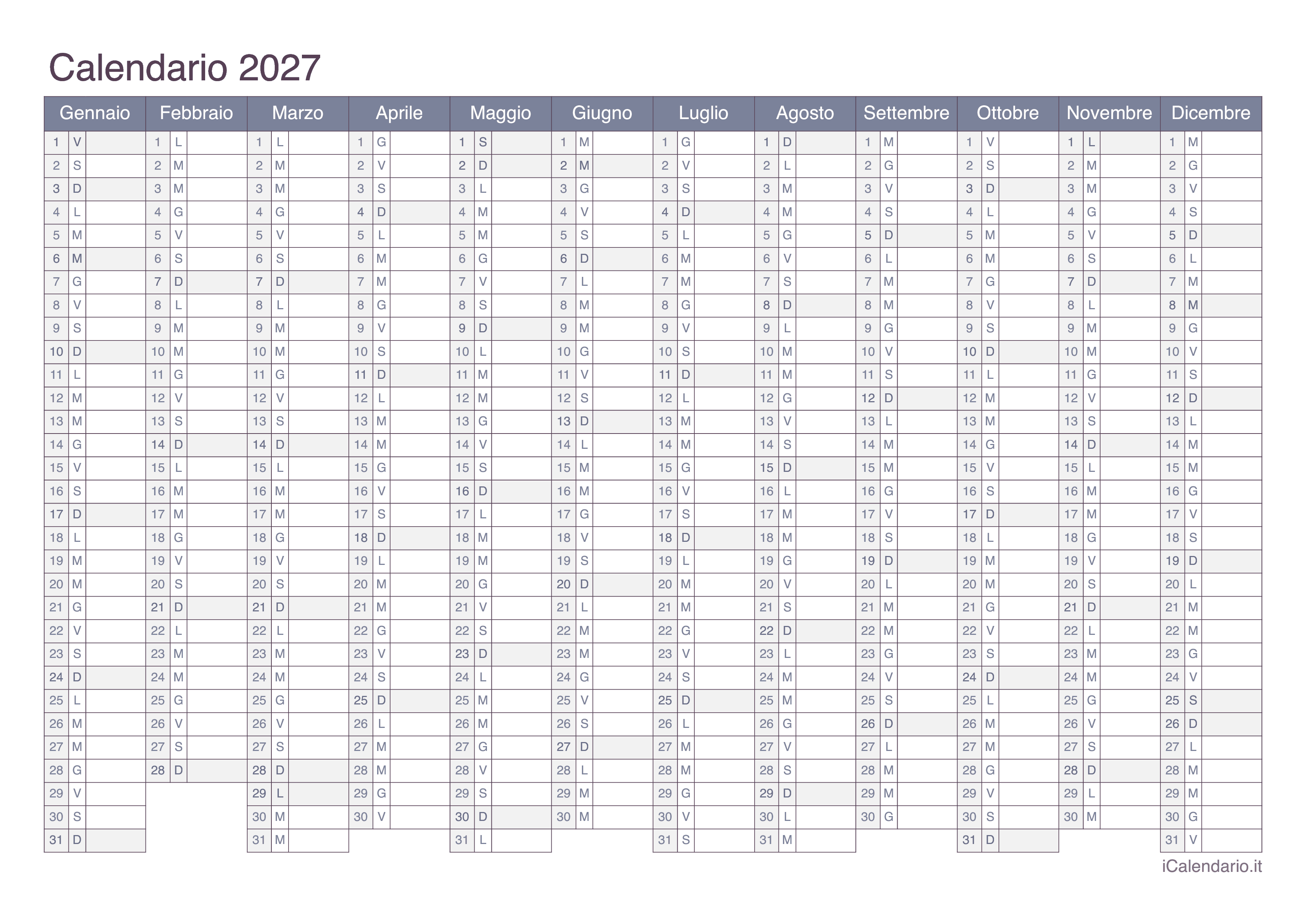 Calendario 2027 da stampare