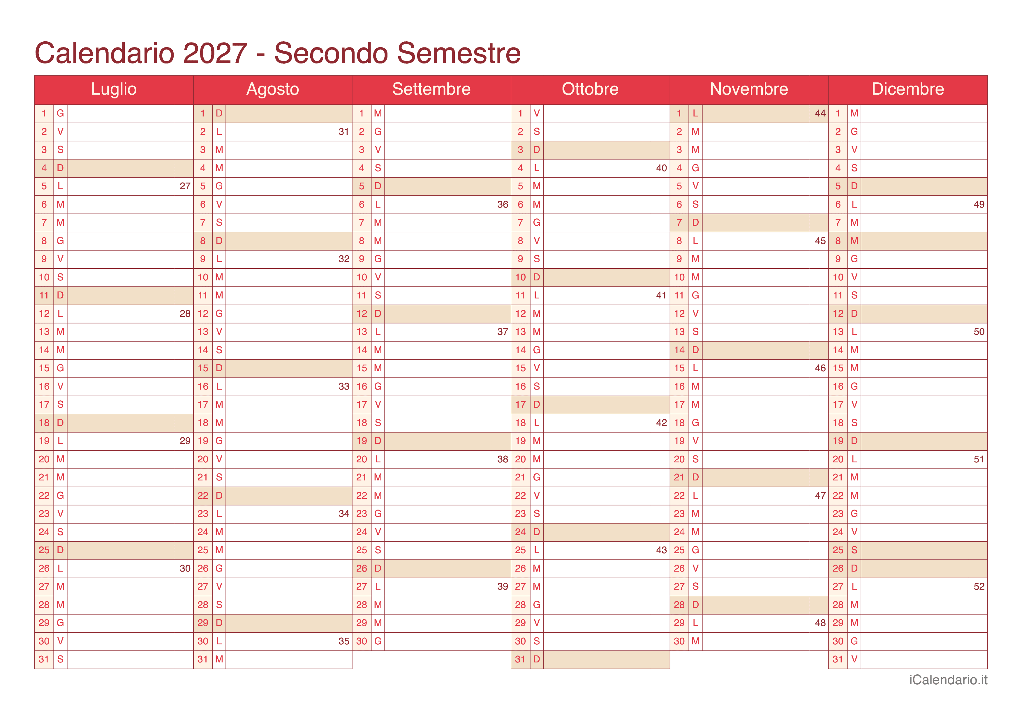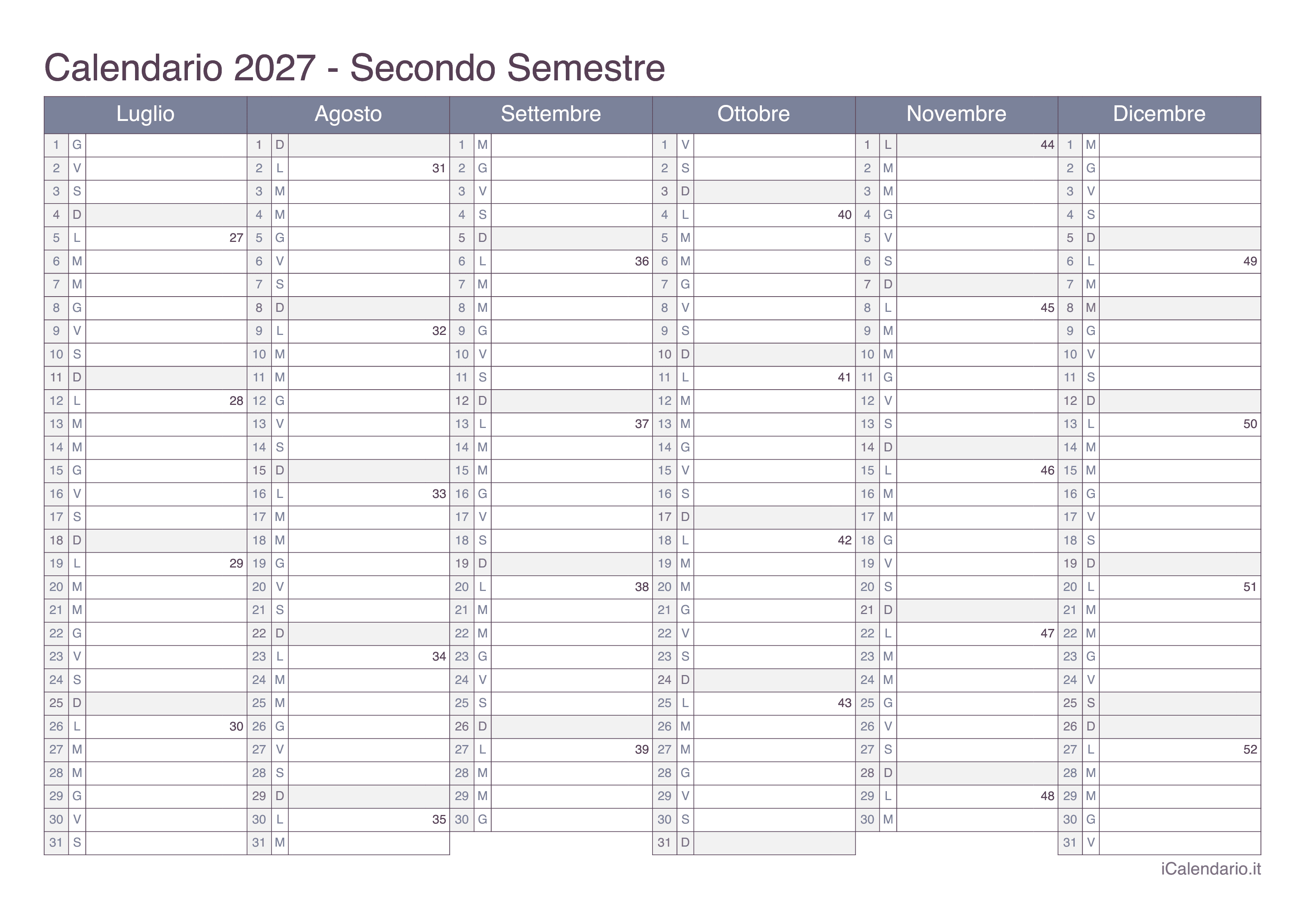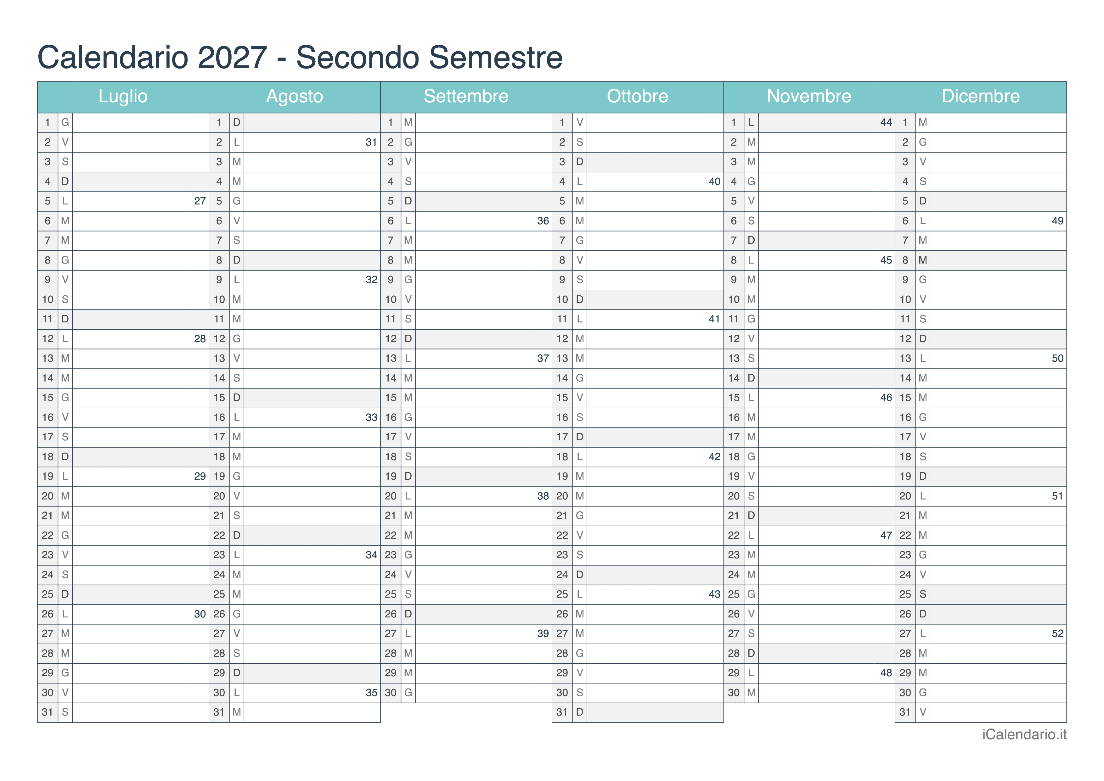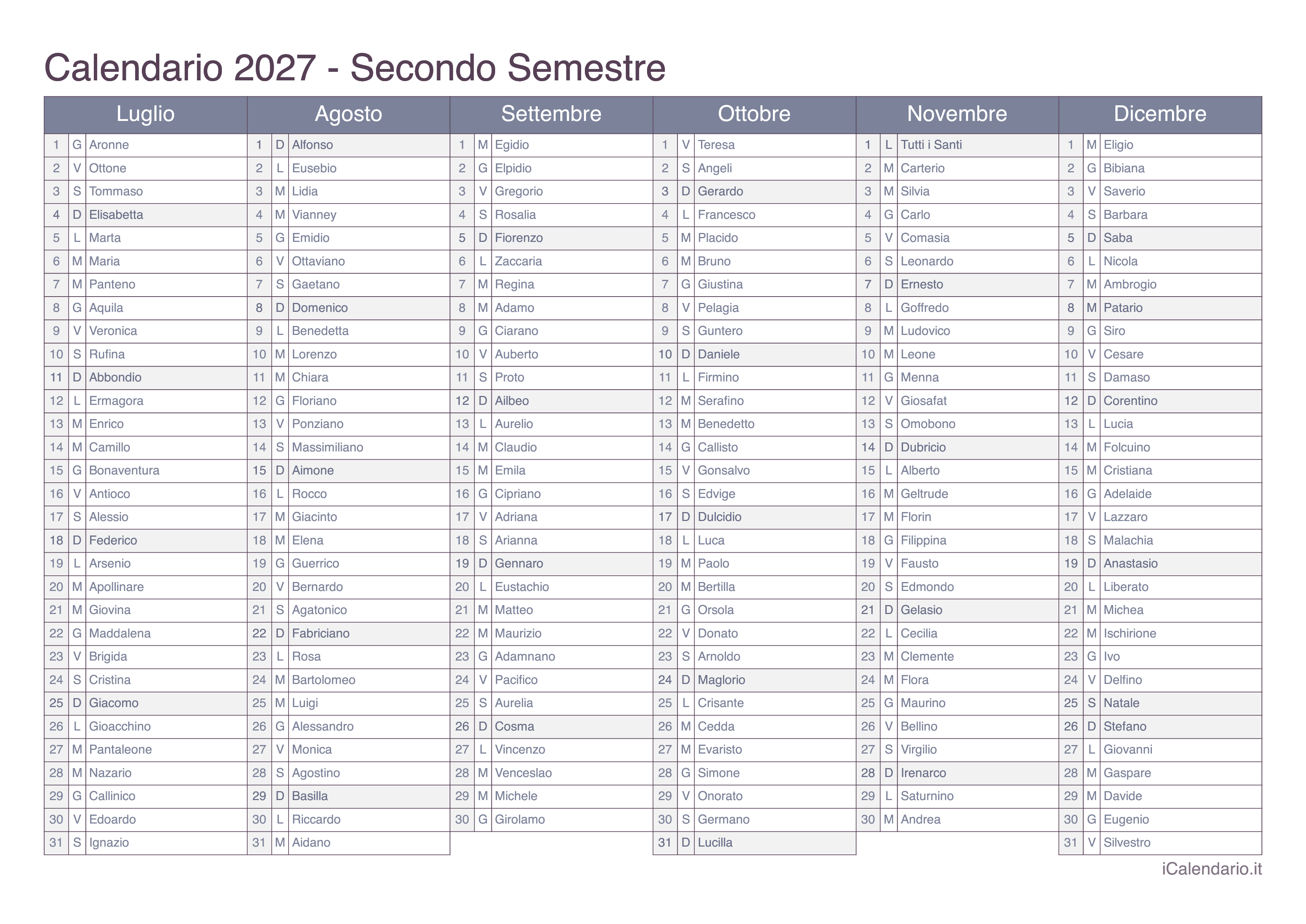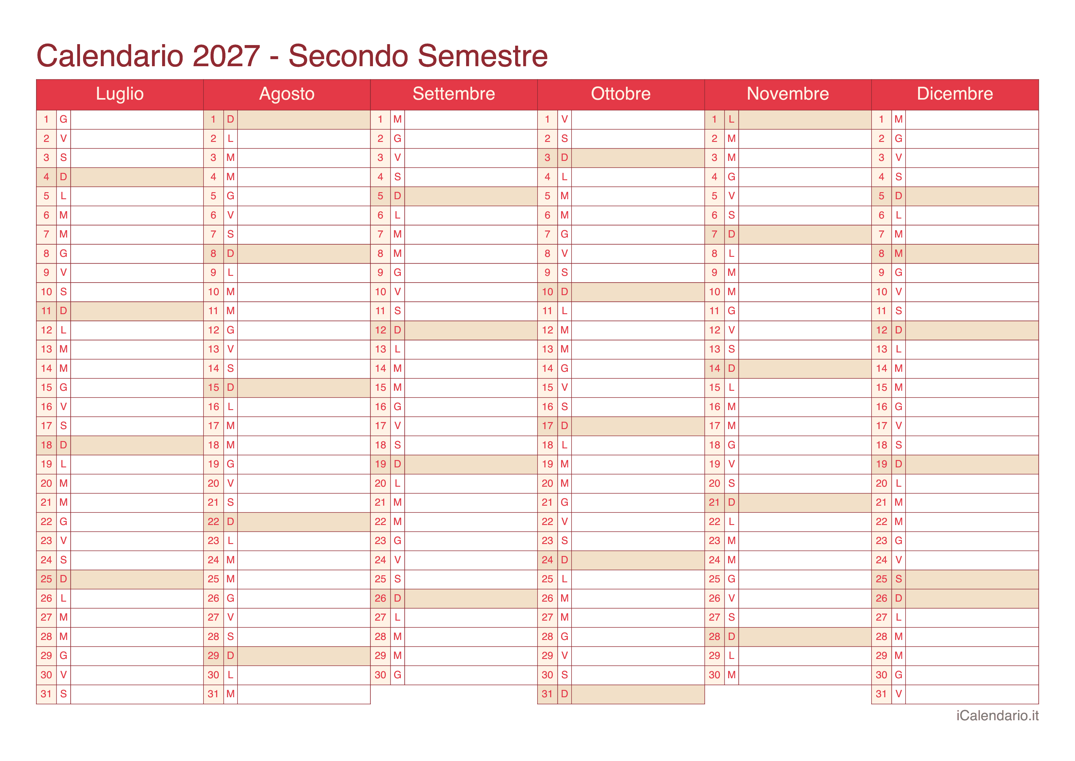 Calendario semestrale 2027